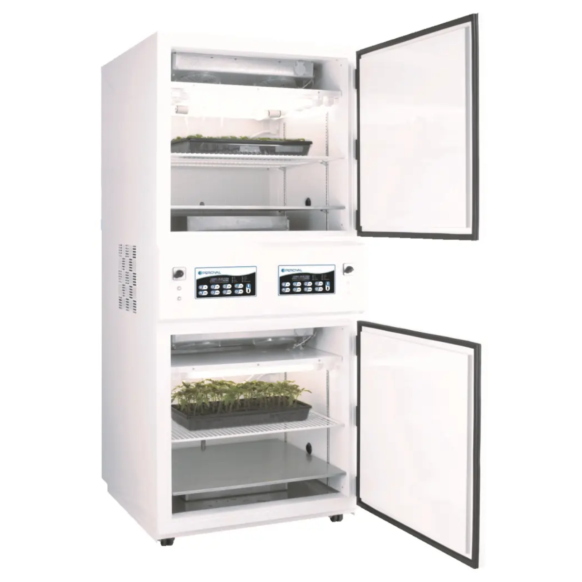 Designed for growth of the Arabidopsis plant. Provides adequate space for growing the plant to maturity under controlled temperature, humidity and light conditions. Incorporates two individually controlled environments in one compact footprint.