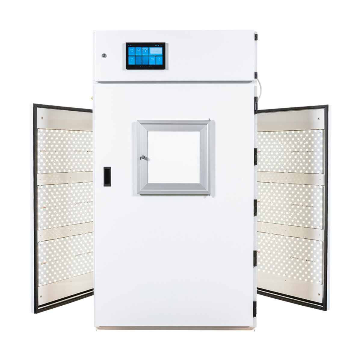 - Externally mounted SciWhite LEDs separated from chamber growth space by glass side wall
