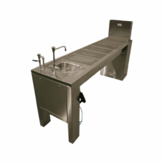 The TBJ Model 24-96 DD is a mid-length downdraft workstation designed to provide a ventilated work surface for laboratories with limited width. Its 21″ x 84″ downdraft work area, combined with a standard spray gun and flush manifold, ensures safe and effective capture of vapors and aerosols. Optional configurations include a hot/cold water faucet and through-wall duct connection for flexible installation. An integral sink option is available for enhanced functionality.